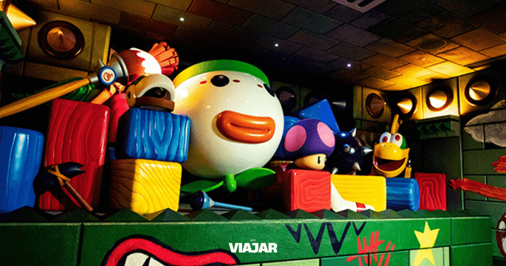 Las tiendas, claro, también juegan su papel. 1-Up Factory no es un local comercial, sino una fábrica de productos emocionales. Allí se venden recuerdos que no se pueden conseguir fuera del parque, reforzando la idea de que la experiencia no solo se vive: se colecciona.